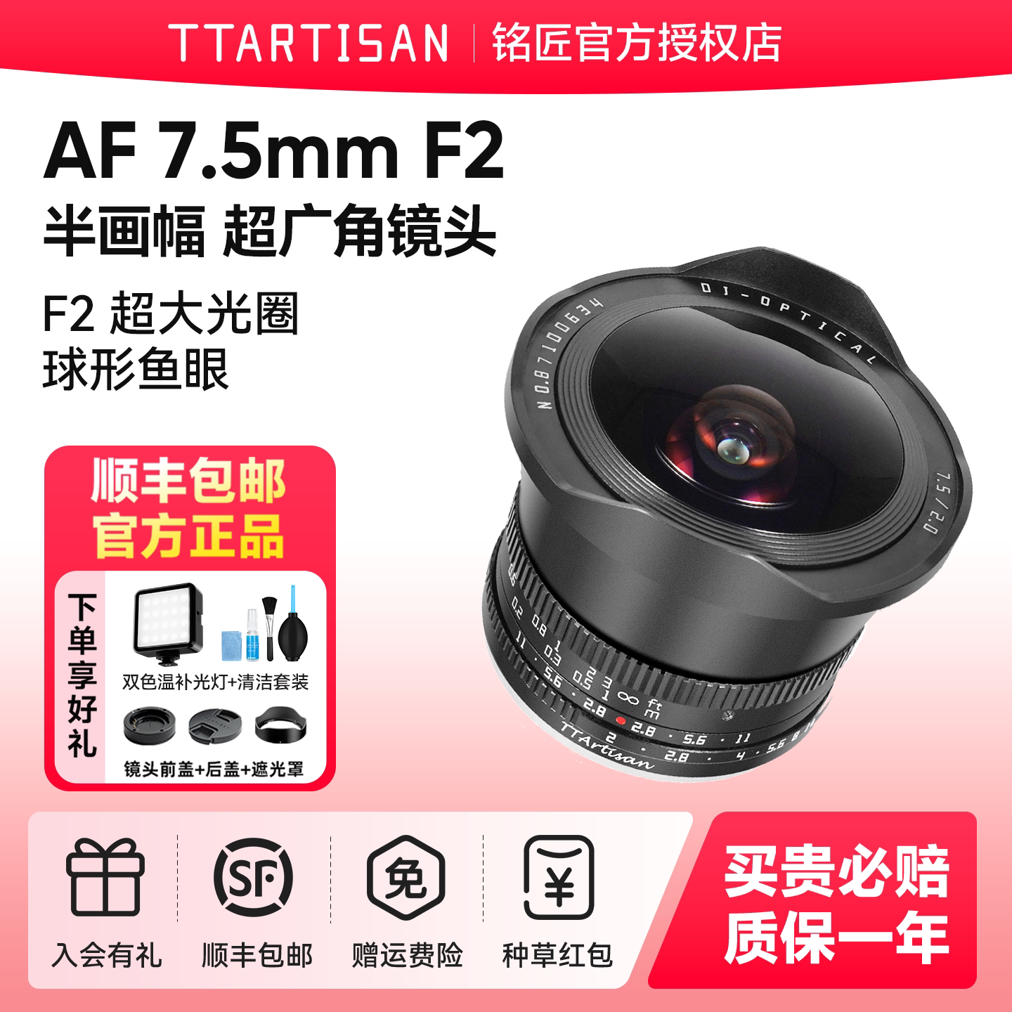 铭匠光学7.5mm f2广角鱼眼镜头适用索尼E口松下M43尼康z佳能富士X