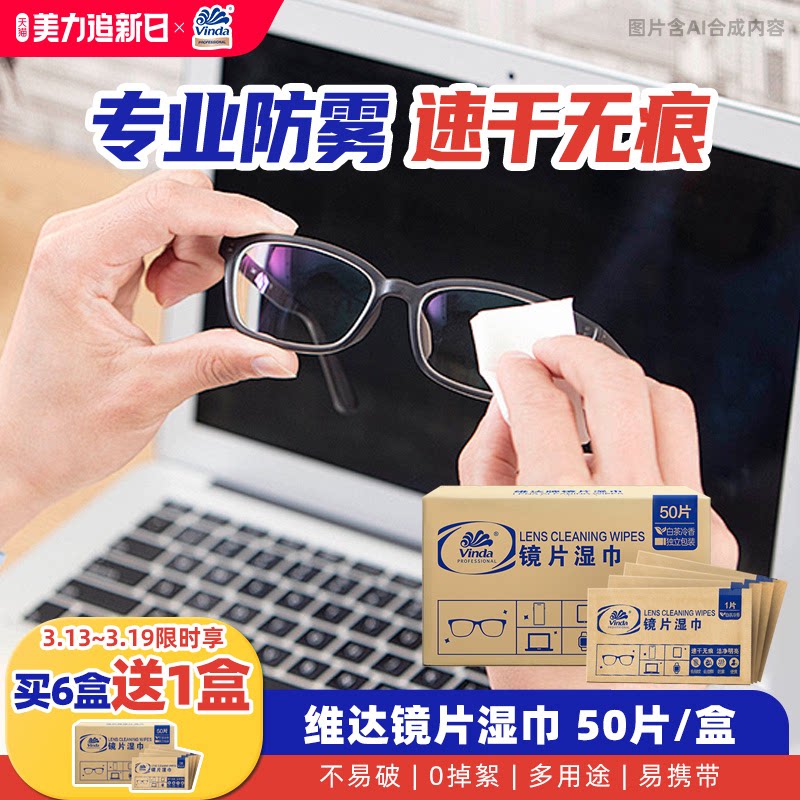 维达镜片镜头眼镜清洁湿巾去污防起雾专业一次性擦拭镜布50片实惠
