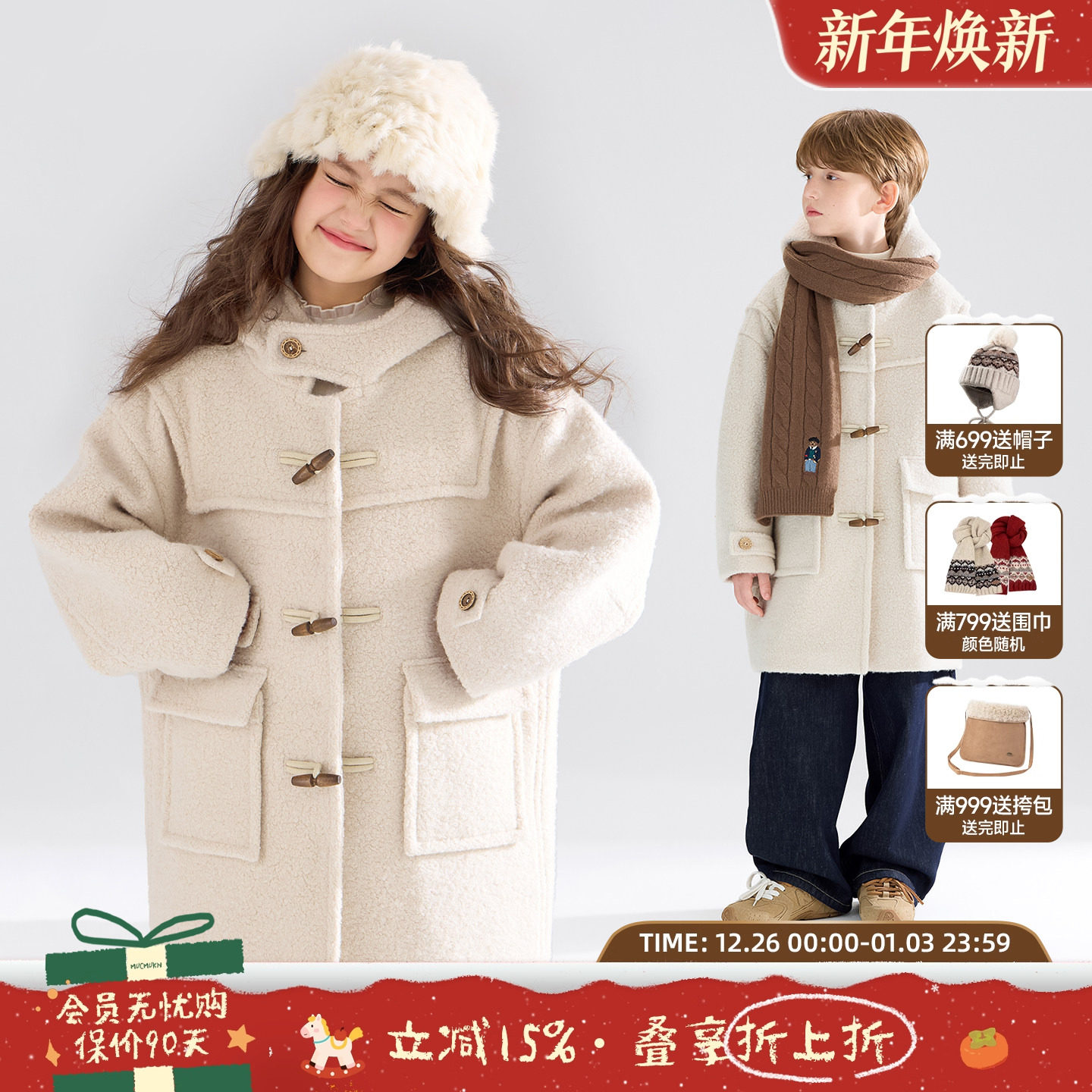 MUCMUKN【新年序曲】圈圈羊毛呢牛角扣连帽大衣保暖外套女童冬新