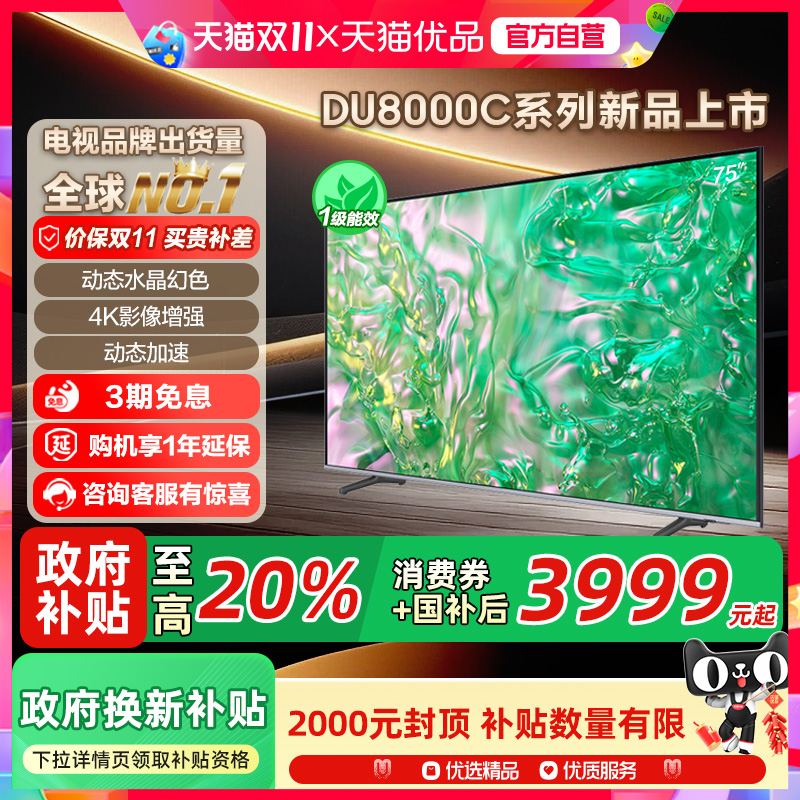 【补贴20%】三星75DU8000C 75英寸钻彩4K LED 液晶电视机国家补贴