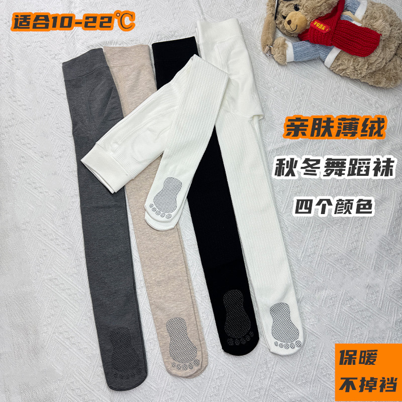 儿童连裤袜春秋季外穿胖女童舞蹈袜白色防滑底秋冬薄绒大童打底裤
