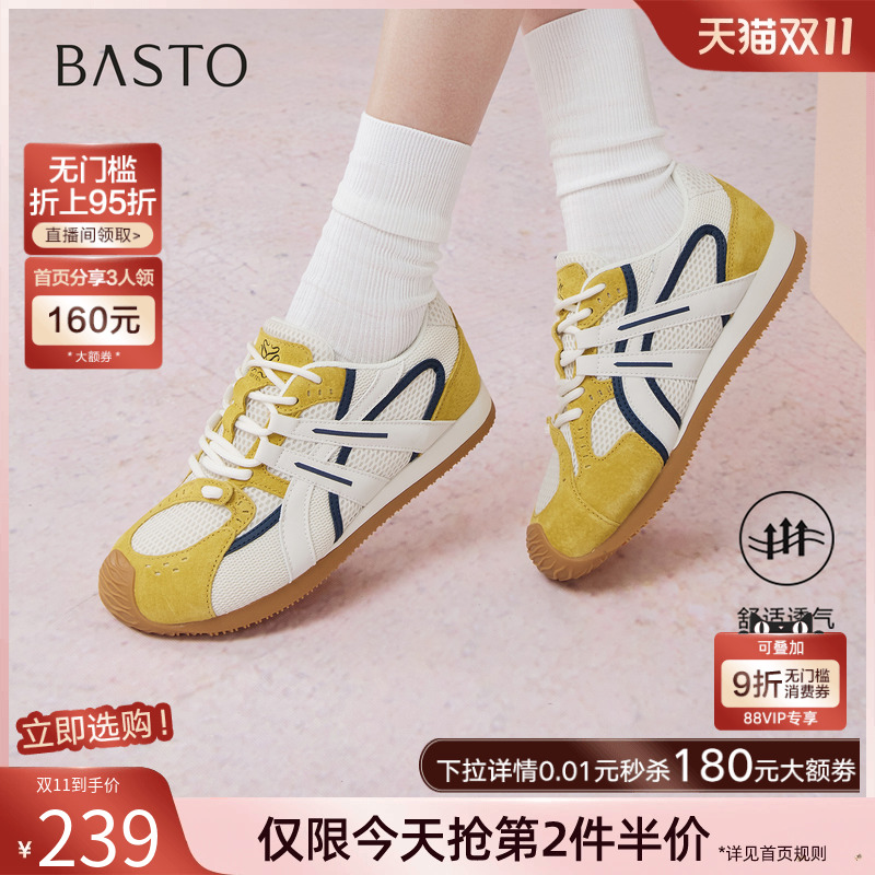 百思图2025秋商场新款网面透气德训鞋跑步鞋女运动休闲鞋B5991CM5