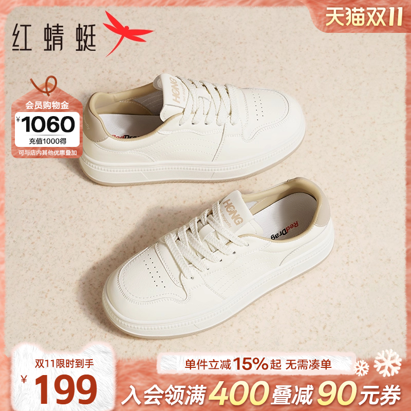 红蜻蜓休闲板鞋2025春秋新款女鞋厚底系带百搭小白鞋运动跑步鞋女