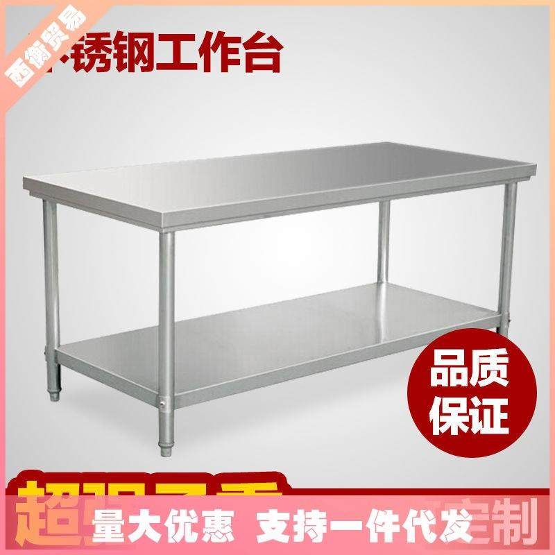 特厚不锈钢工作台不锈钢操作台商用厨房饭店餐厅切菜桌子双层收纳