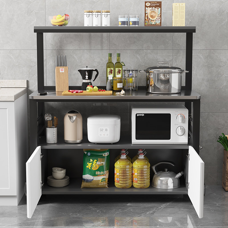 厨房置物架不锈钢操作台切菜桌落地烤箱微波炉收纳架多功能餐边柜