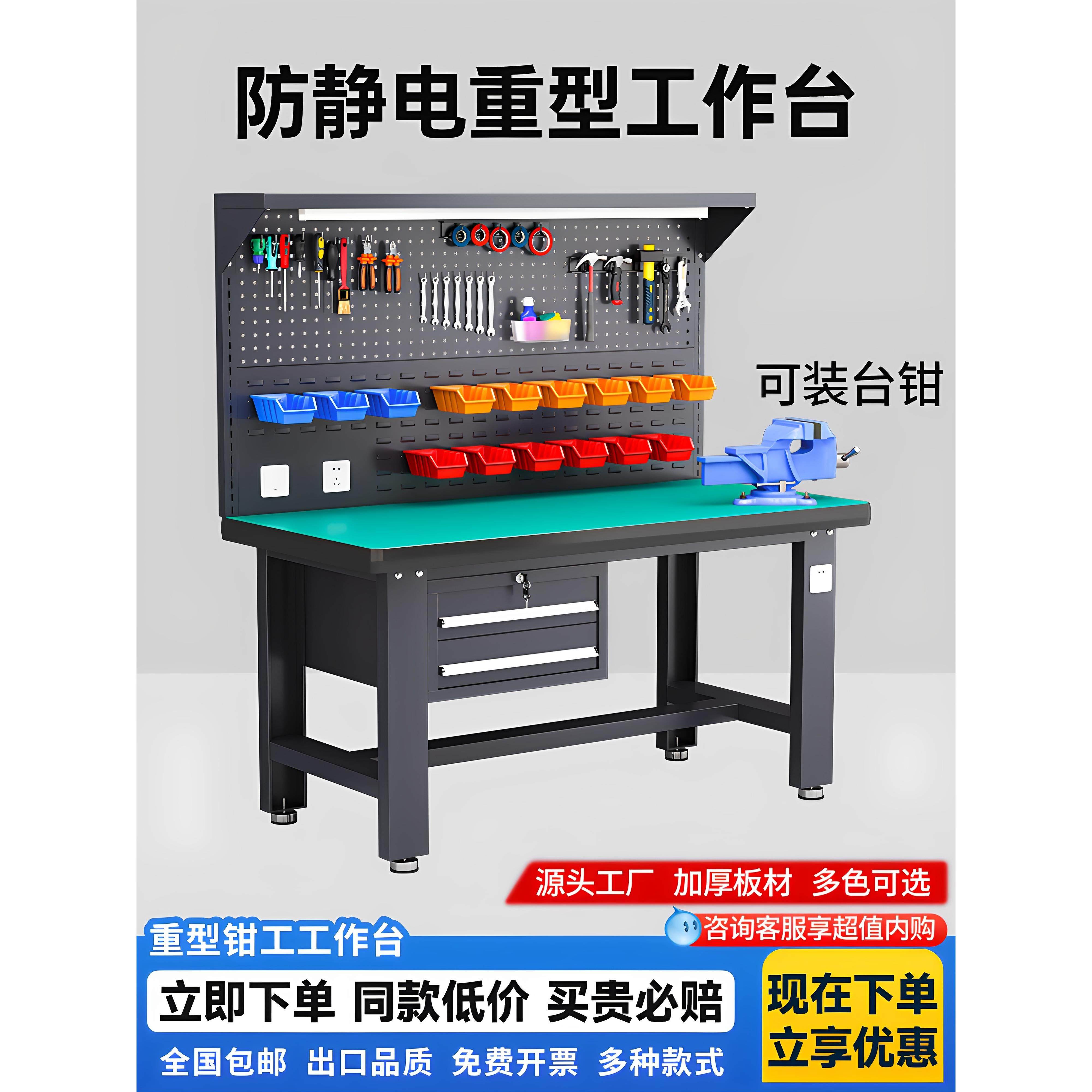 工业级重型工作台钳工工作台防静电维修工作台车间不锈钢操作台桌