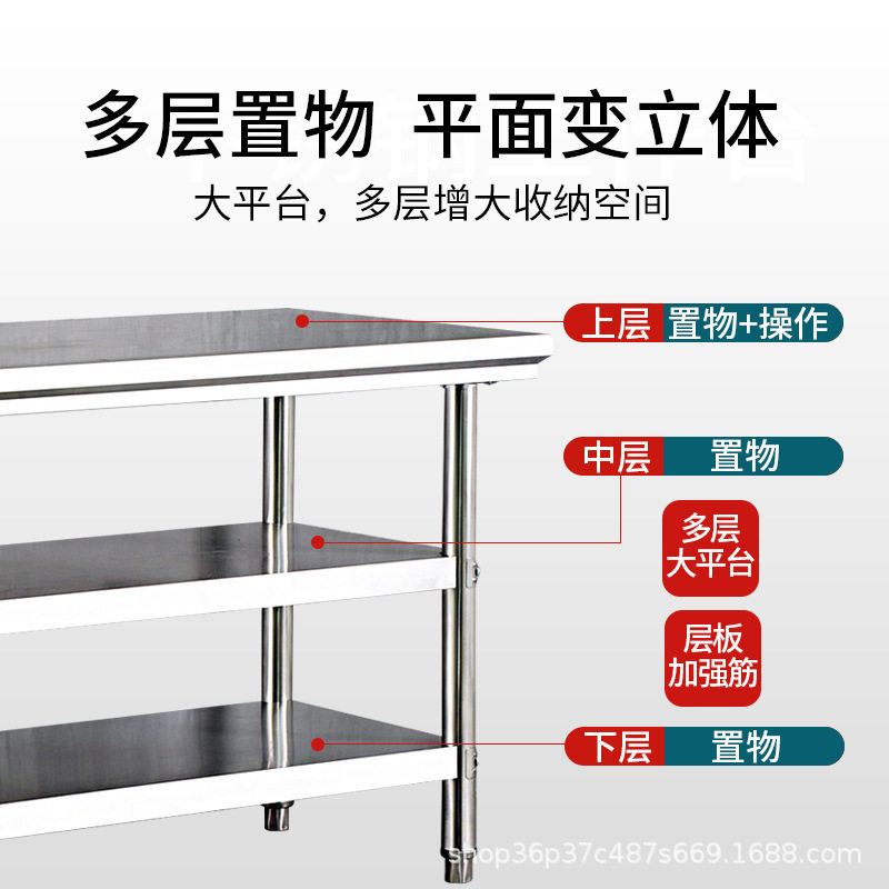 加厚不锈钢操作台两层后厨切菜桌面三层厨房置物架单层灶台架拆装