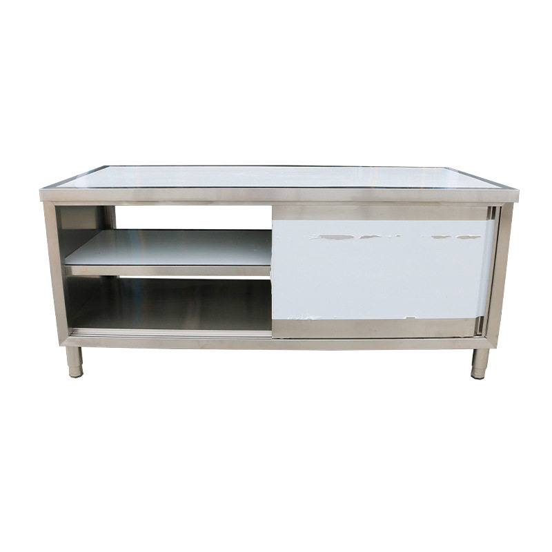 商用不锈钢操作台焊接款拉门厨房切菜台饭店食堂收纳柜拉门工作台