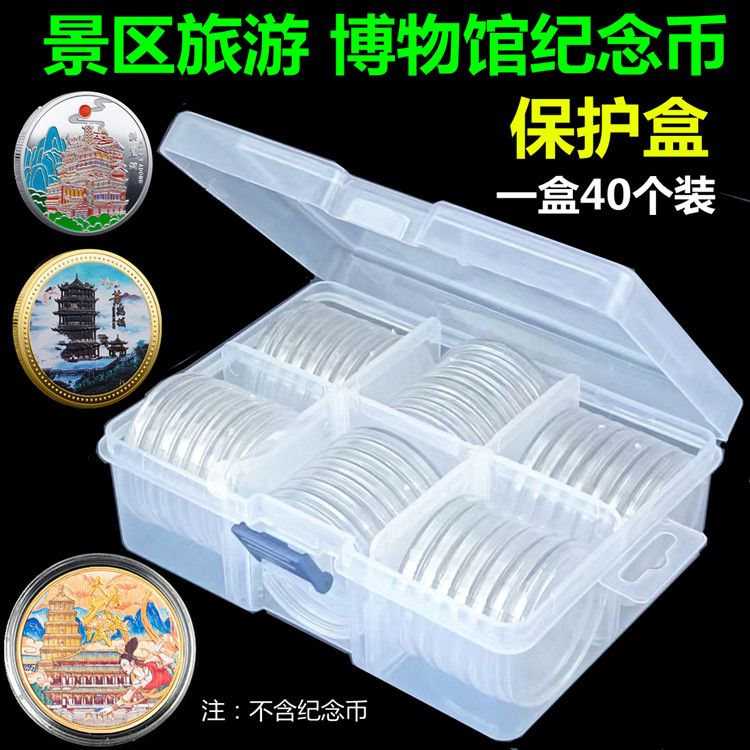 博物馆景区旅游纪念币保护壳收藏盒45mm圆盒铜钱银元硬币收纳盒
