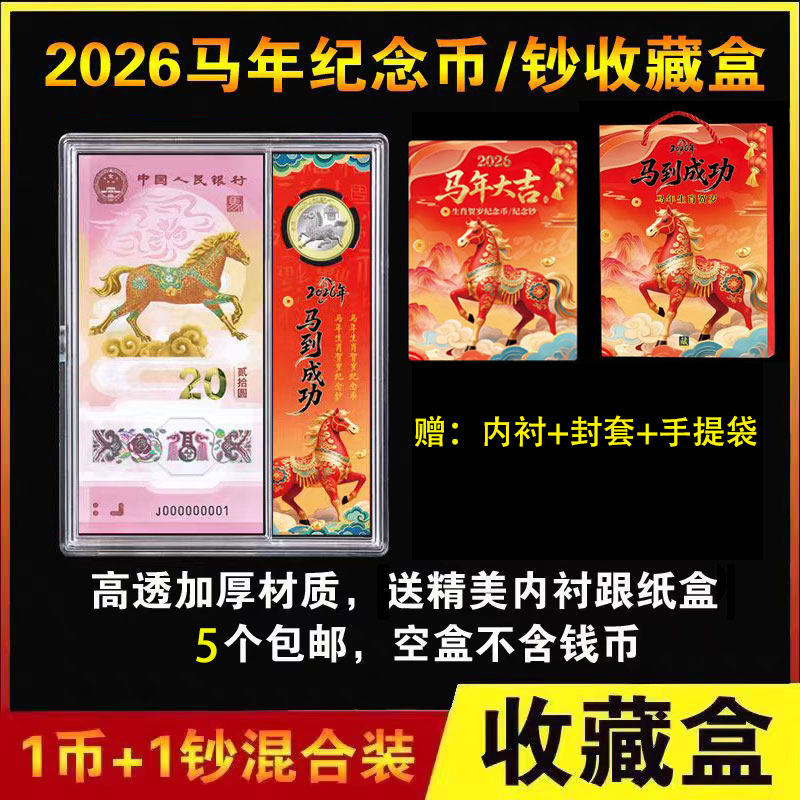 2026马年纪念币纪念钞收藏盒二币二钞收纳盒1币1钞生肖钱币保护盒