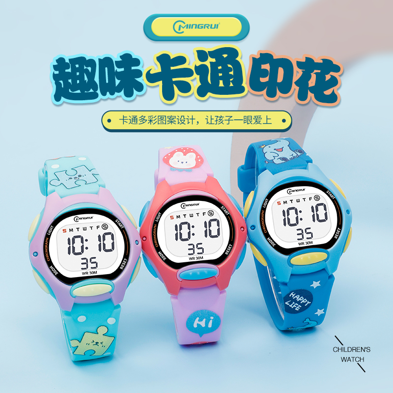 儿童手表男生夜光闹钟数字式 小学生卡通动漫生活防水女孩电子表