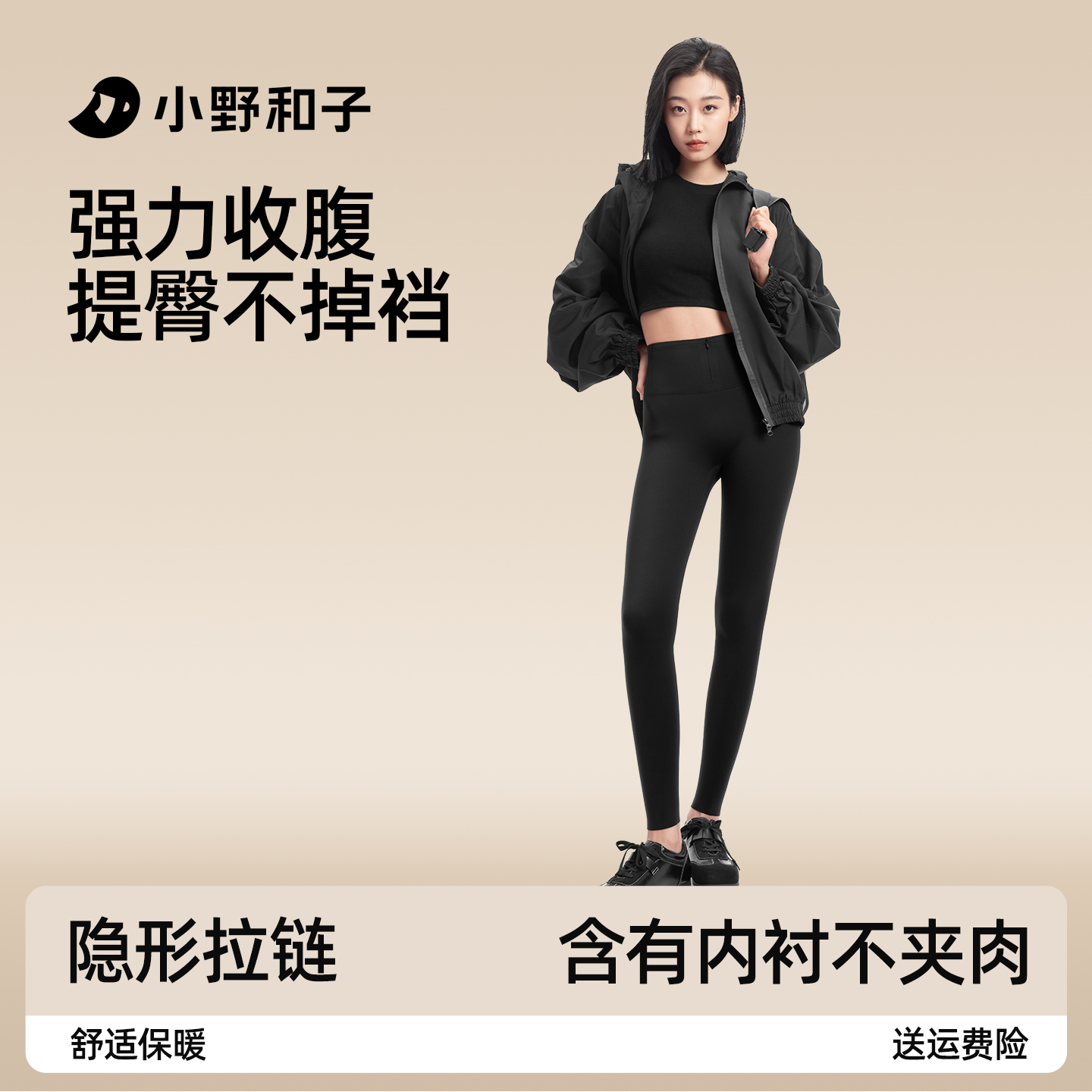小野和子拉链鲨鱼裤女新款秋冬外穿加厚打底裤黑色保暖收腹瑜伽裤