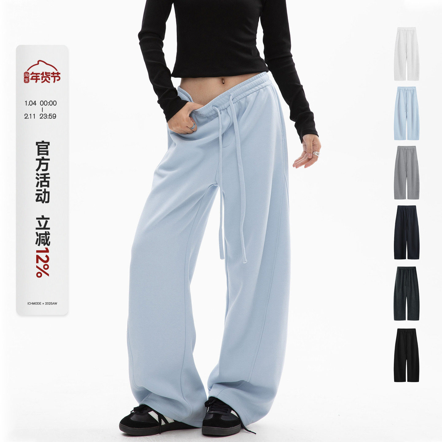 糯米裤子女春秋冬2025新款高腰垂感宽松慵懒感直筒休闲运动阔腿裤