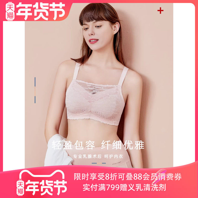 爱慕新品义乳文胸假胸假乳胸罩术后文胸抹胸蕾丝无钢圈 清爽几何
