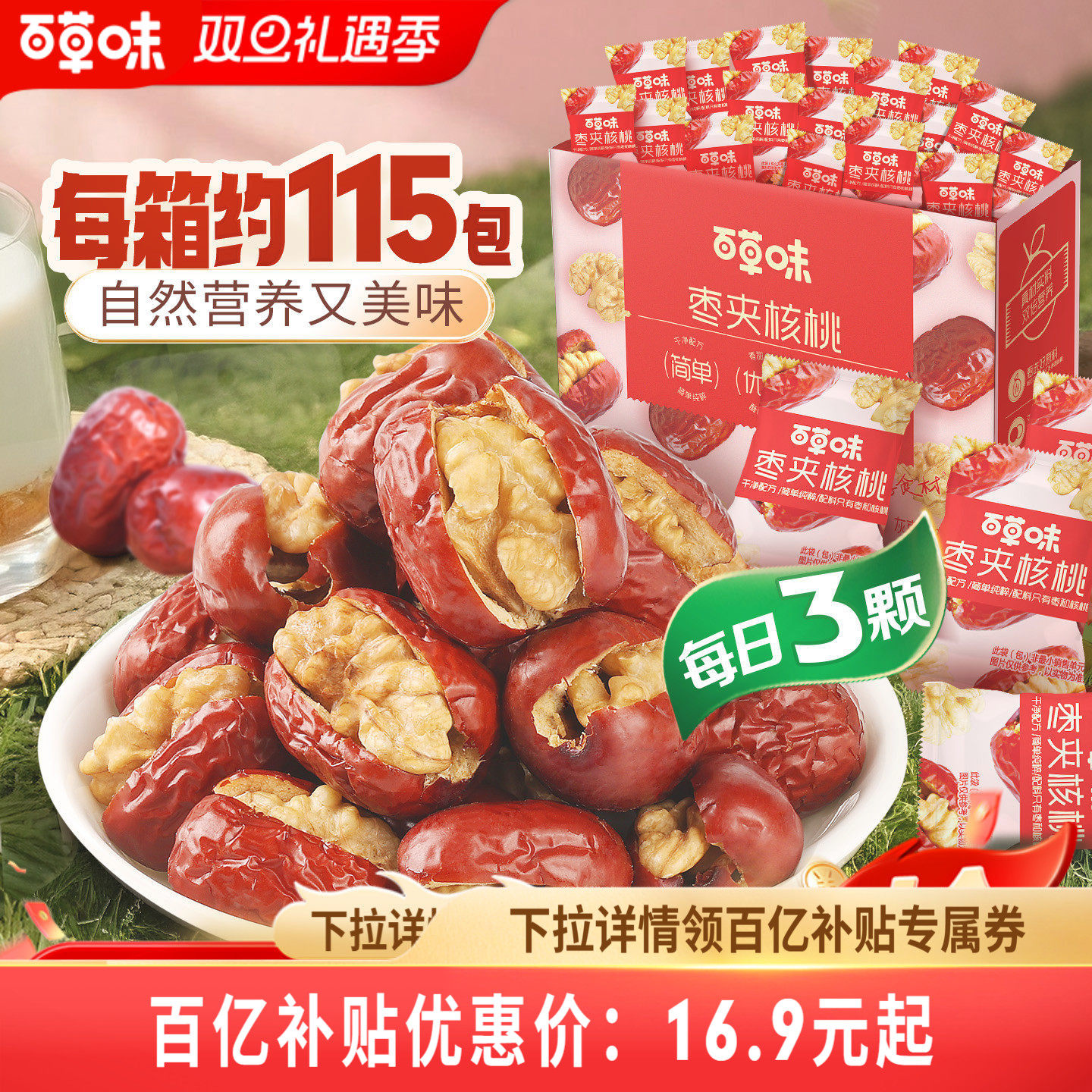 约115个百草味每日红枣夹核桃758g新疆红枣夹核桃枣仁派果干礼盒