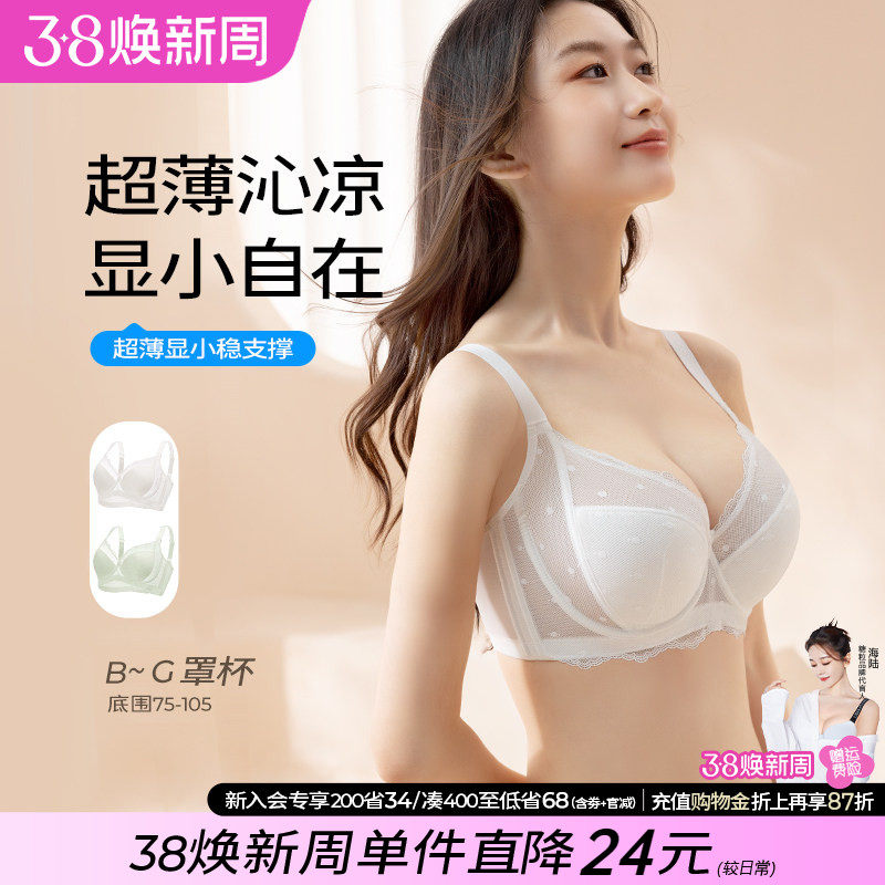 大码胸罩薄款无钢圈大胸显小神器全罩杯文胸超薄胖mm缩胸内衣女夏