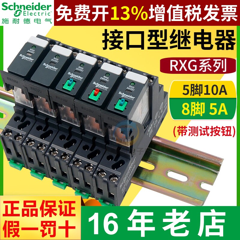 施耐德RXG22BD/23/12/13电磁中间继电器24v小型薄型rgze1s48m 5脚