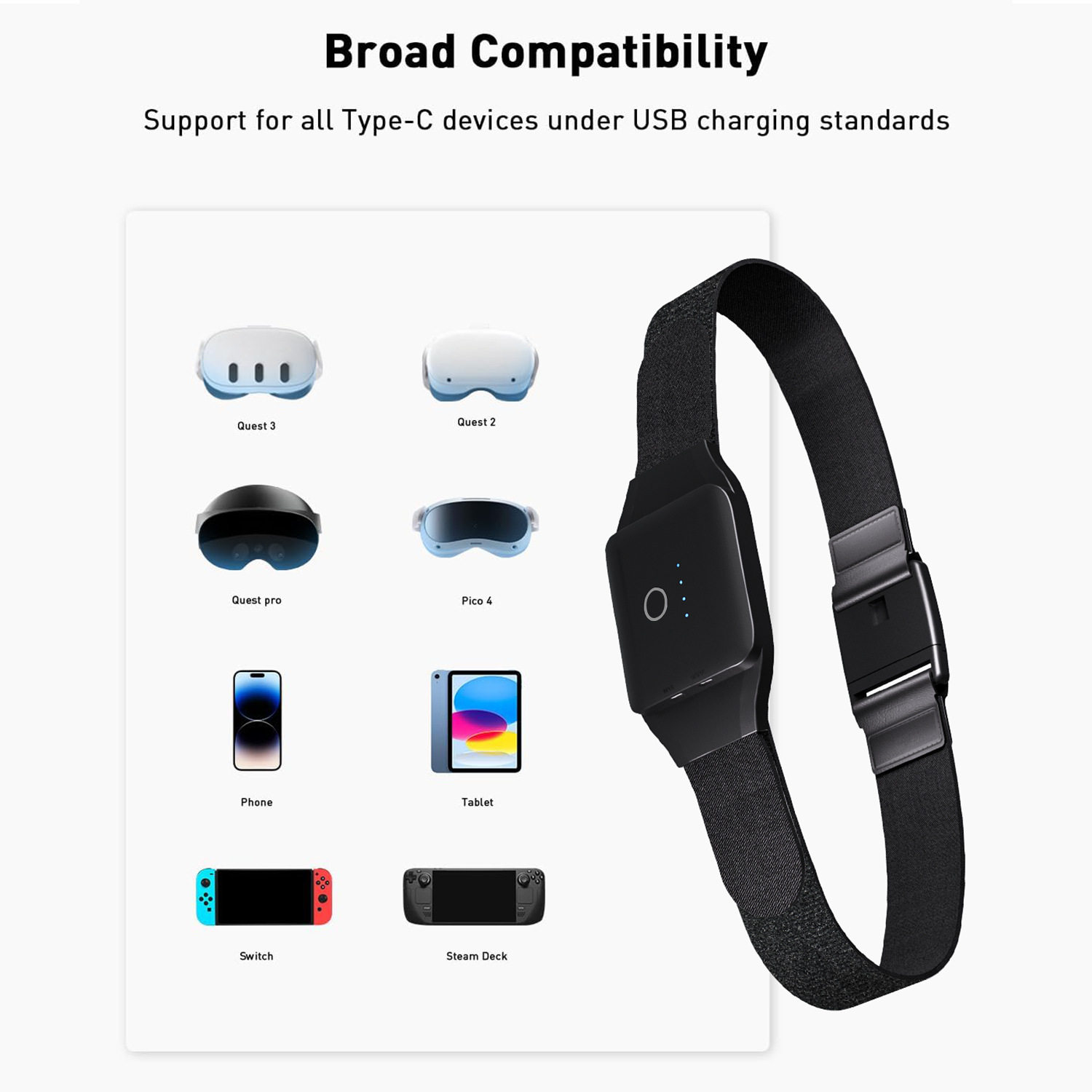 PD18W VR续航10000毫安腰带式备用充电快充支持手机VR眼镜配件