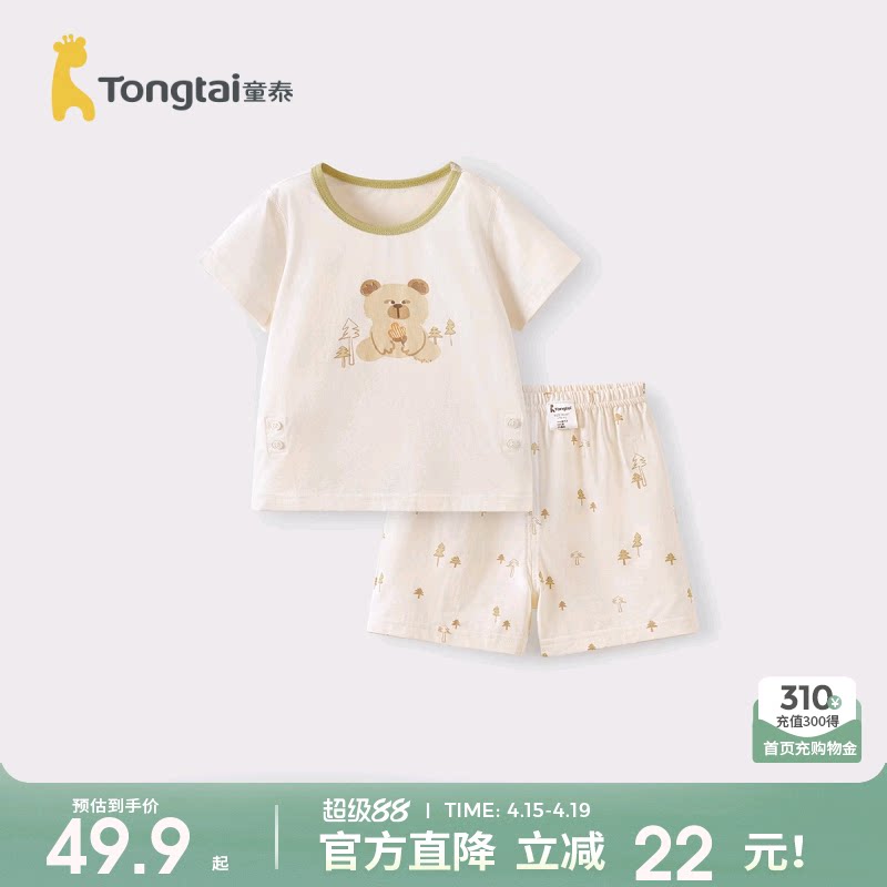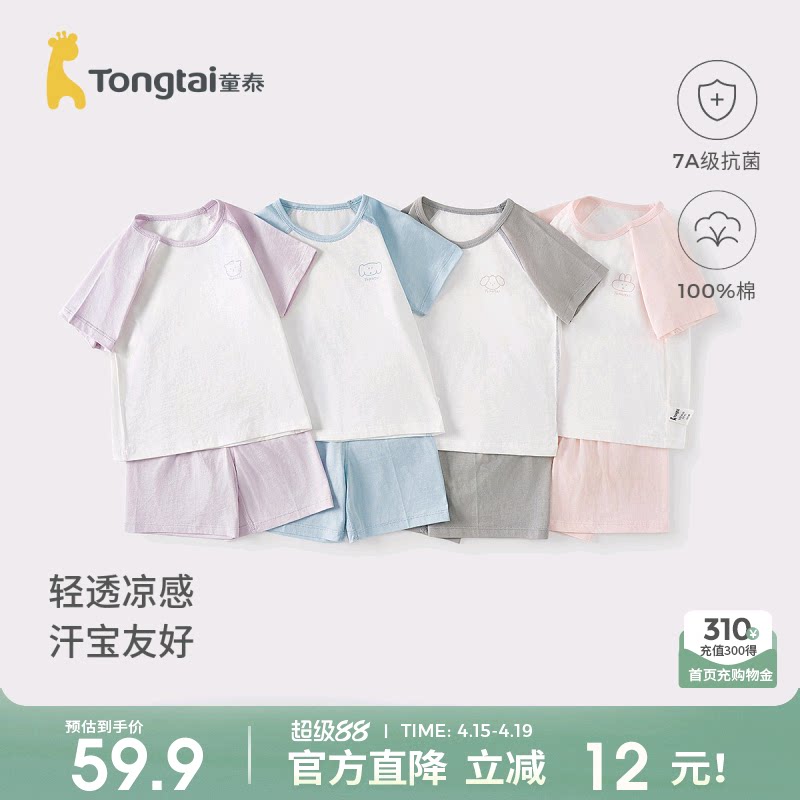 童泰婴儿套装莫代尔棉夏季睡衣男女宝宝衣服儿童内衣短袖上衣裤子