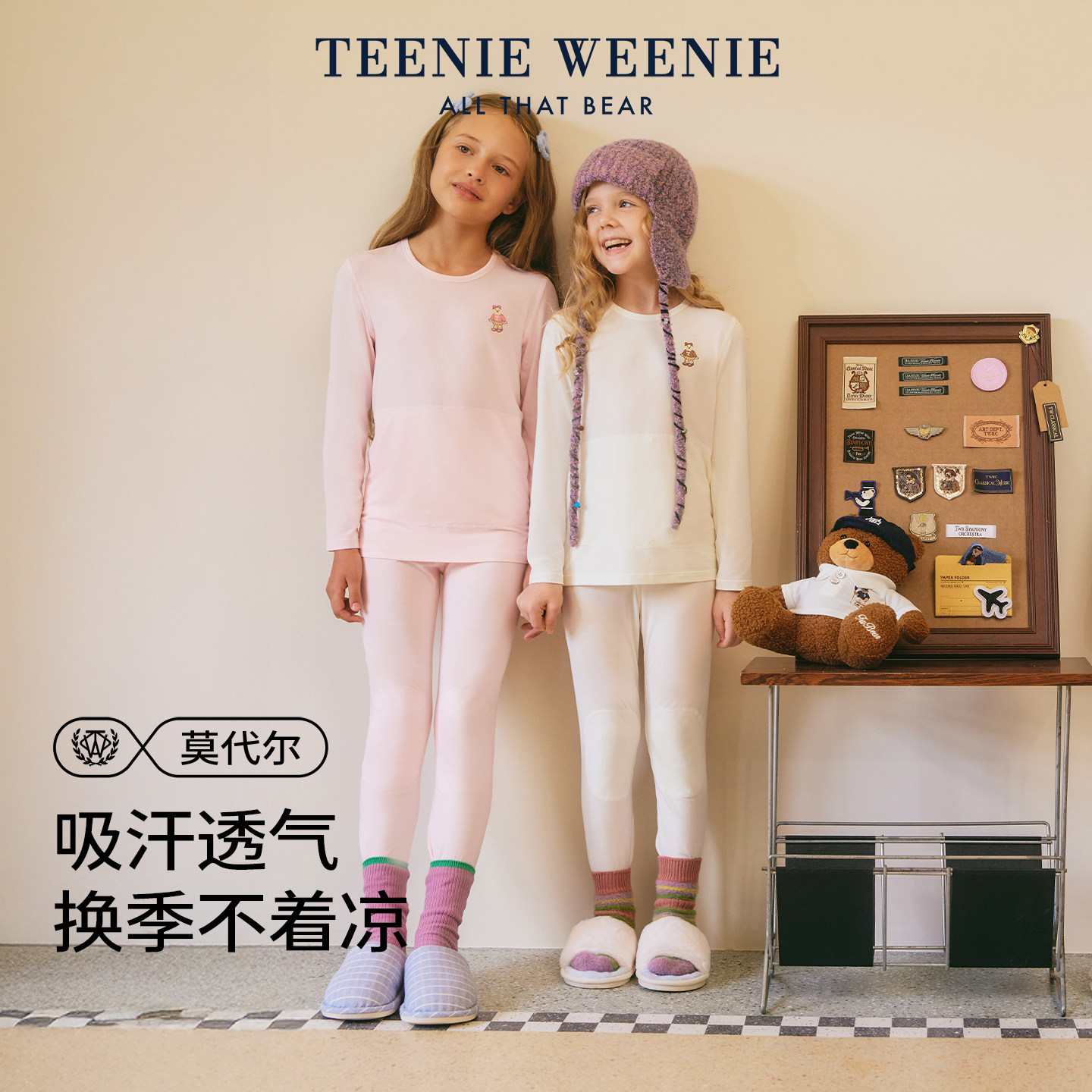 TeenieWeenie儿童睡衣家居服莫代尔春秋薄款男女童秋衣裤内衣套装