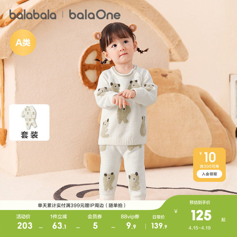 巴拉巴拉balaOne婴儿内衣套装男女童冬家居秋衣裤半边绒加厚保暖