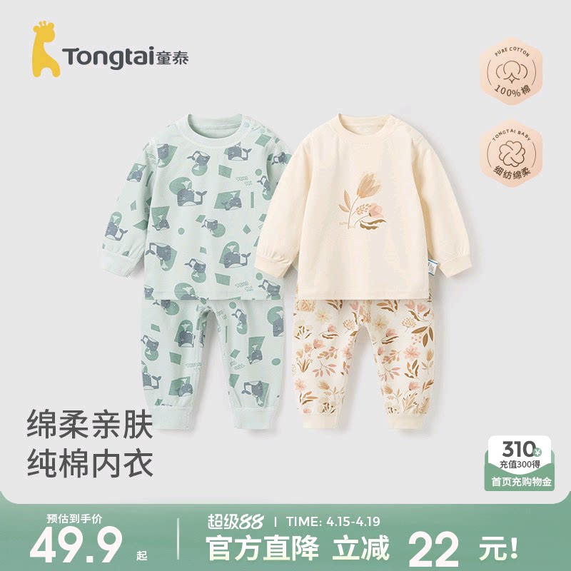 童泰婴儿内衣套装纯棉衣服春秋1-6岁男女宝宝四季睡衣儿童秋衣裤