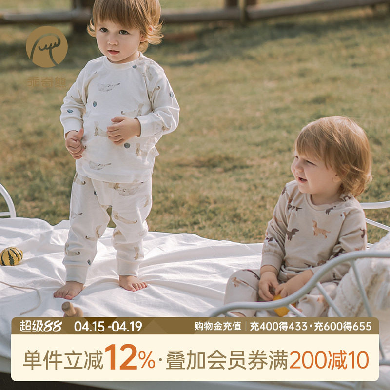 英氏儿童睡衣纯棉男童春秋熊猫秋衣裤套装男孩a类家居服2026新款