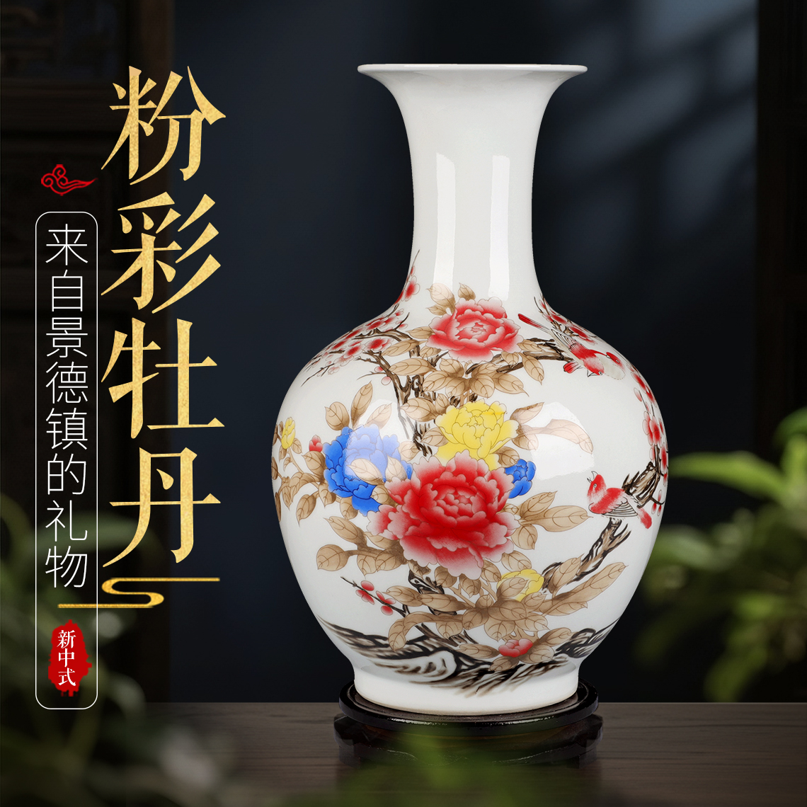 景德镇陶瓷器花瓶中式摆件插花器大瓷瓶简约家居工艺品装饰品博古