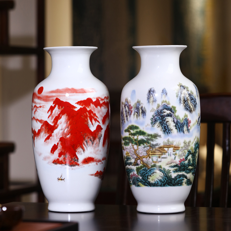 景德镇陶瓷器小花瓶中式家居客厅插花摆件瓷瓶酒柜玄关装饰工艺品