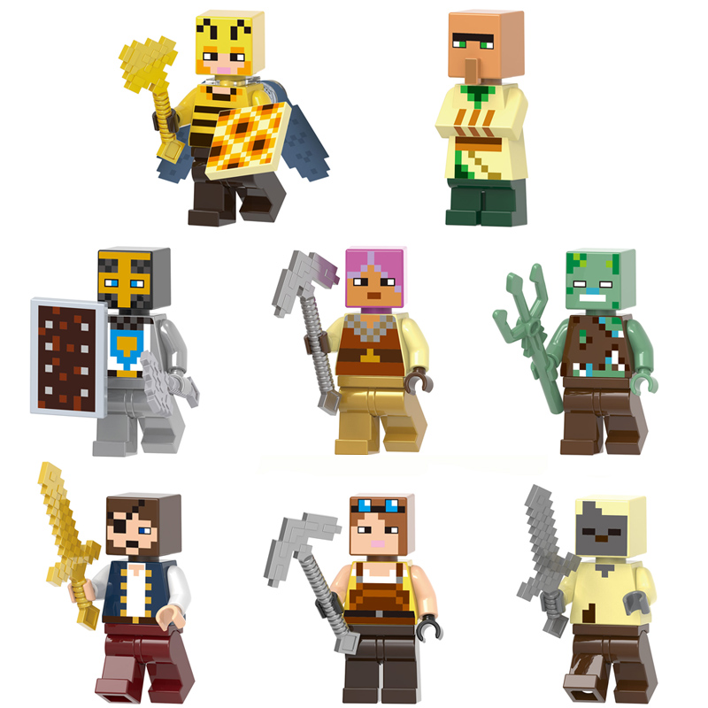 我的世界le高全套史蒂夫苦力怕恶魂积木人仔末影人武器拼装玩具男