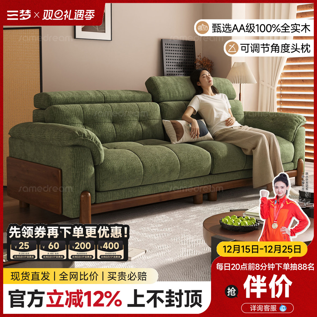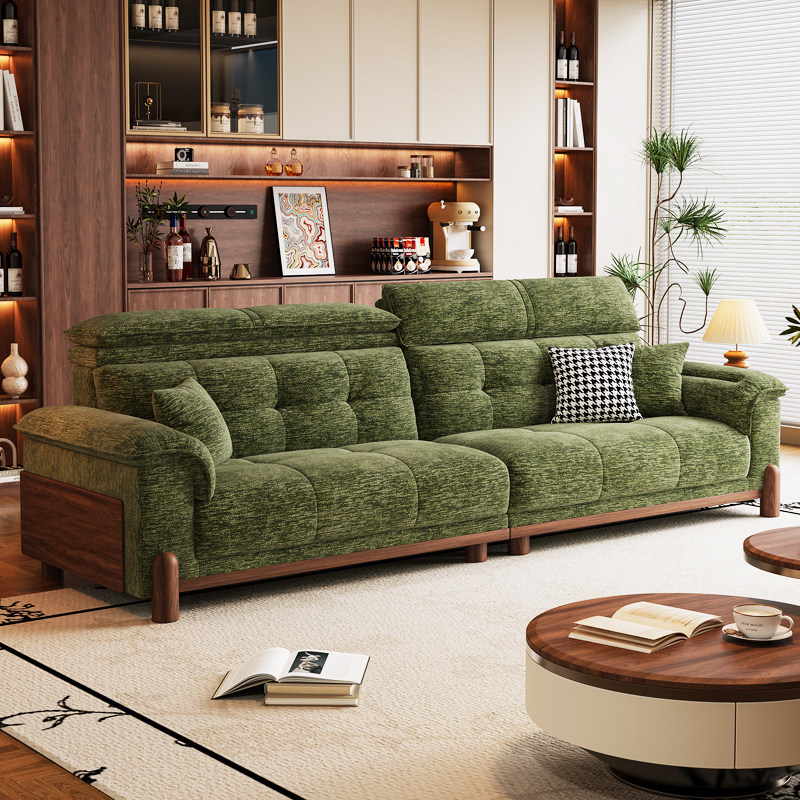 中古风布艺沙发客厅大小户型2025新款复古绿色雪尼尔可拆洗沙发