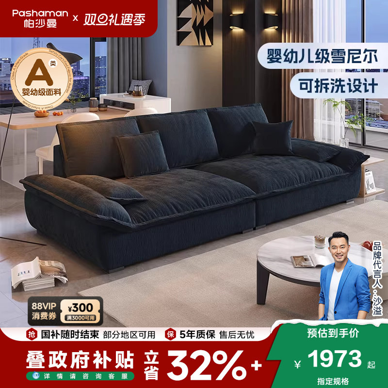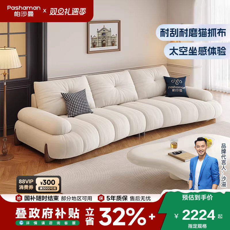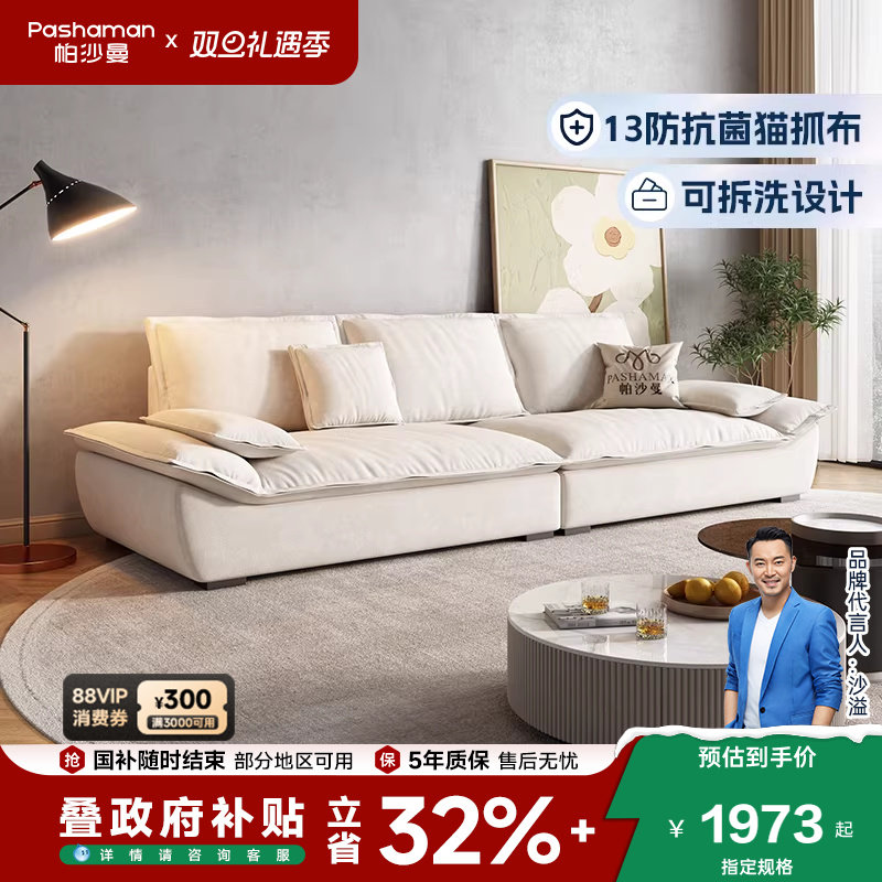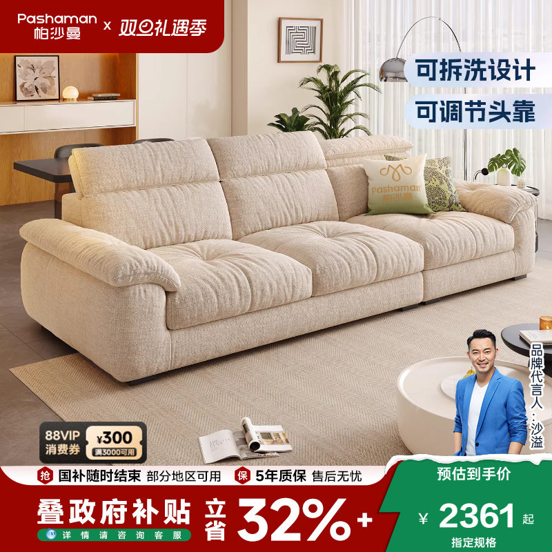 帕沙曼云朵布艺沙发小户型客厅可拆洗直排沙发棉麻现代简约宽坐深