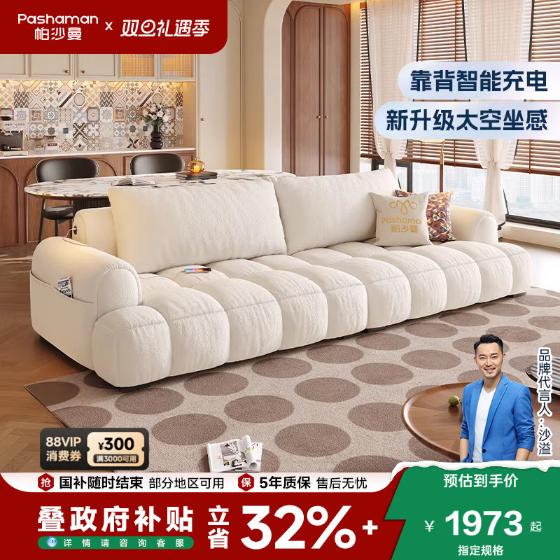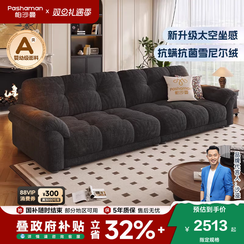 政府补贴帕沙曼云朵布艺沙发小户型客厅法式复古风实木沙发雪尼尔