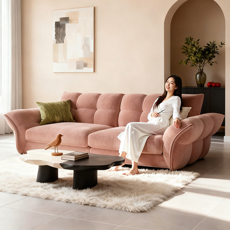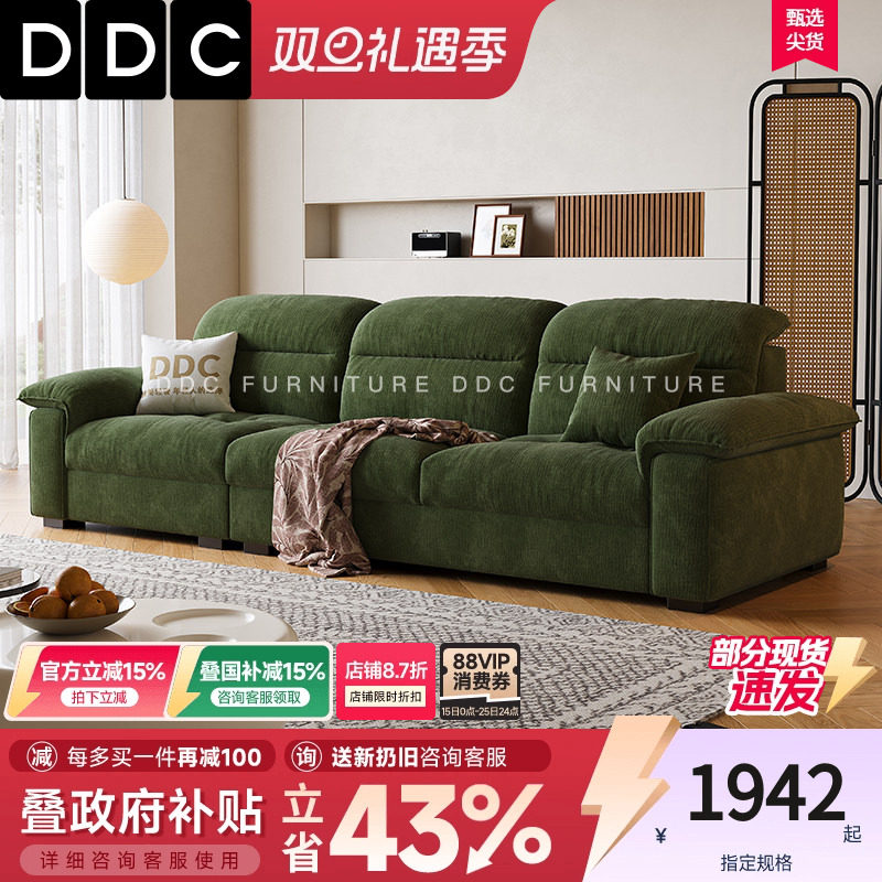 DDC布艺沙发小户型客厅2025新款复古奶油风云朵沙发雪尼尔高靠背