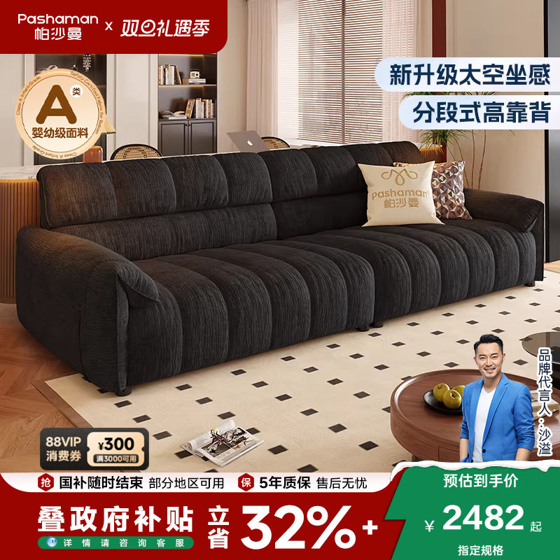 帕沙曼布艺沙发小户型简约客厅2025新款原木风大象耳朵沙发猫抓布