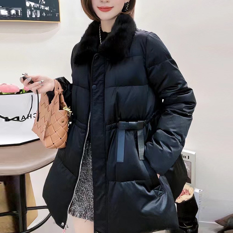 - 羽绒女中长款毛领