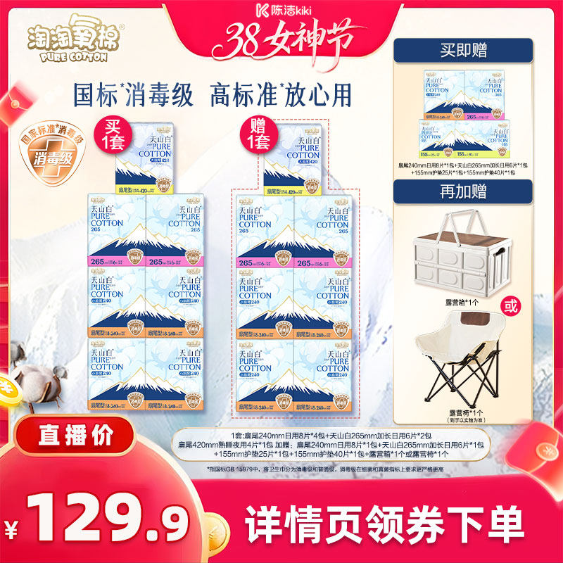 【k姐推荐】淘淘氧棉天山白消毒级小扇尾纯棉卫生巾组合杨紫同款