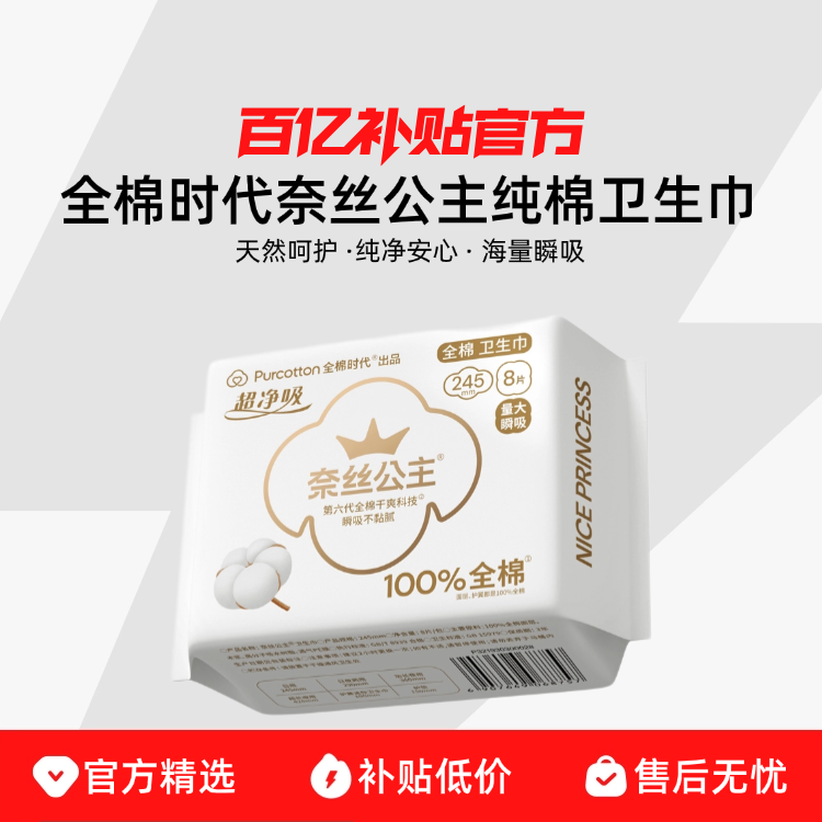 全棉时代奈丝公主纯棉卫生巾超薄干爽日用夜用姨妈巾日用夜用组合
