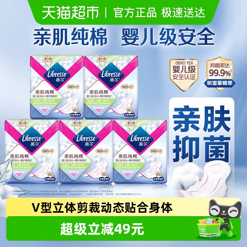 【优于新国标】Libresse薇尔亲肌纯棉卫生巾285mm40片