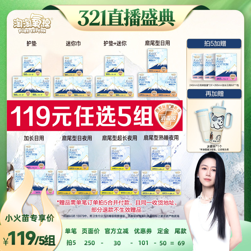【任选10包】淘淘氧棉天山白消毒级纯棉卫生巾安睡裤全周期任选