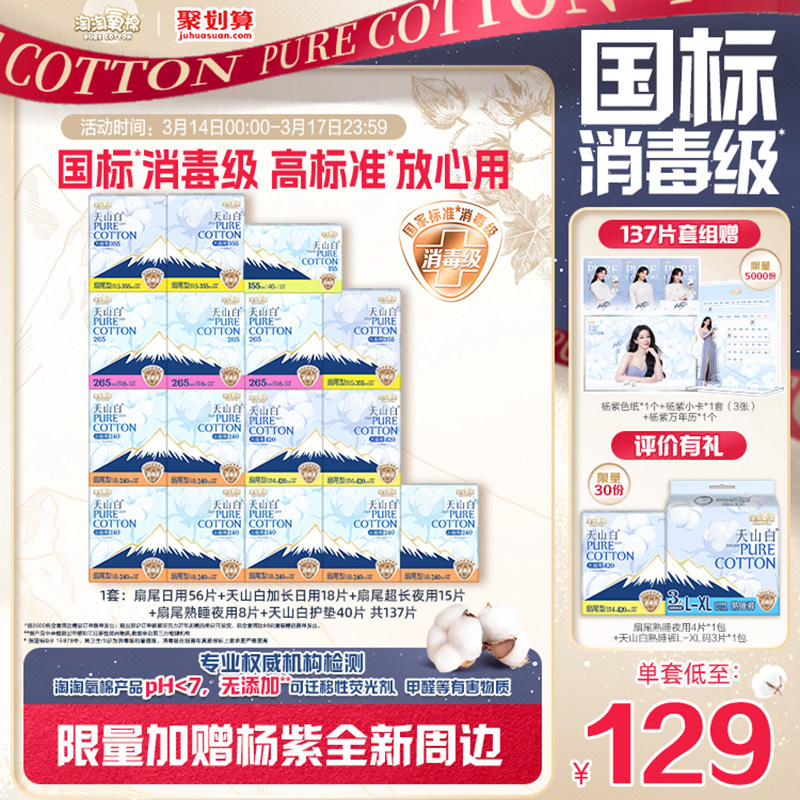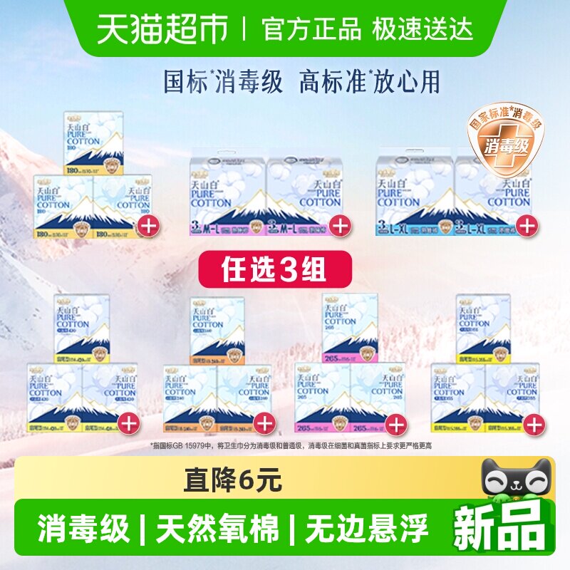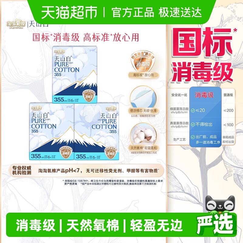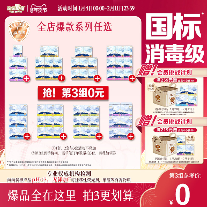 数量拍3【国标消毒级】淘淘氧棉天山白消毒级纯棉卫生巾任选组合