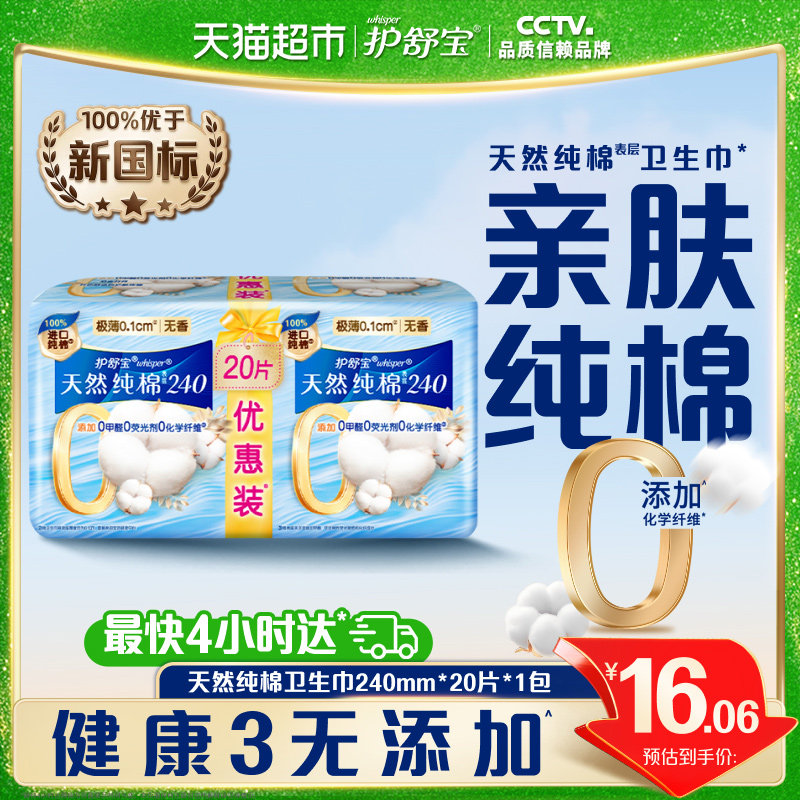 【新客尝鲜】护舒宝净肤纯棉卫生巾240mm20片超薄透气干爽姨妈巾