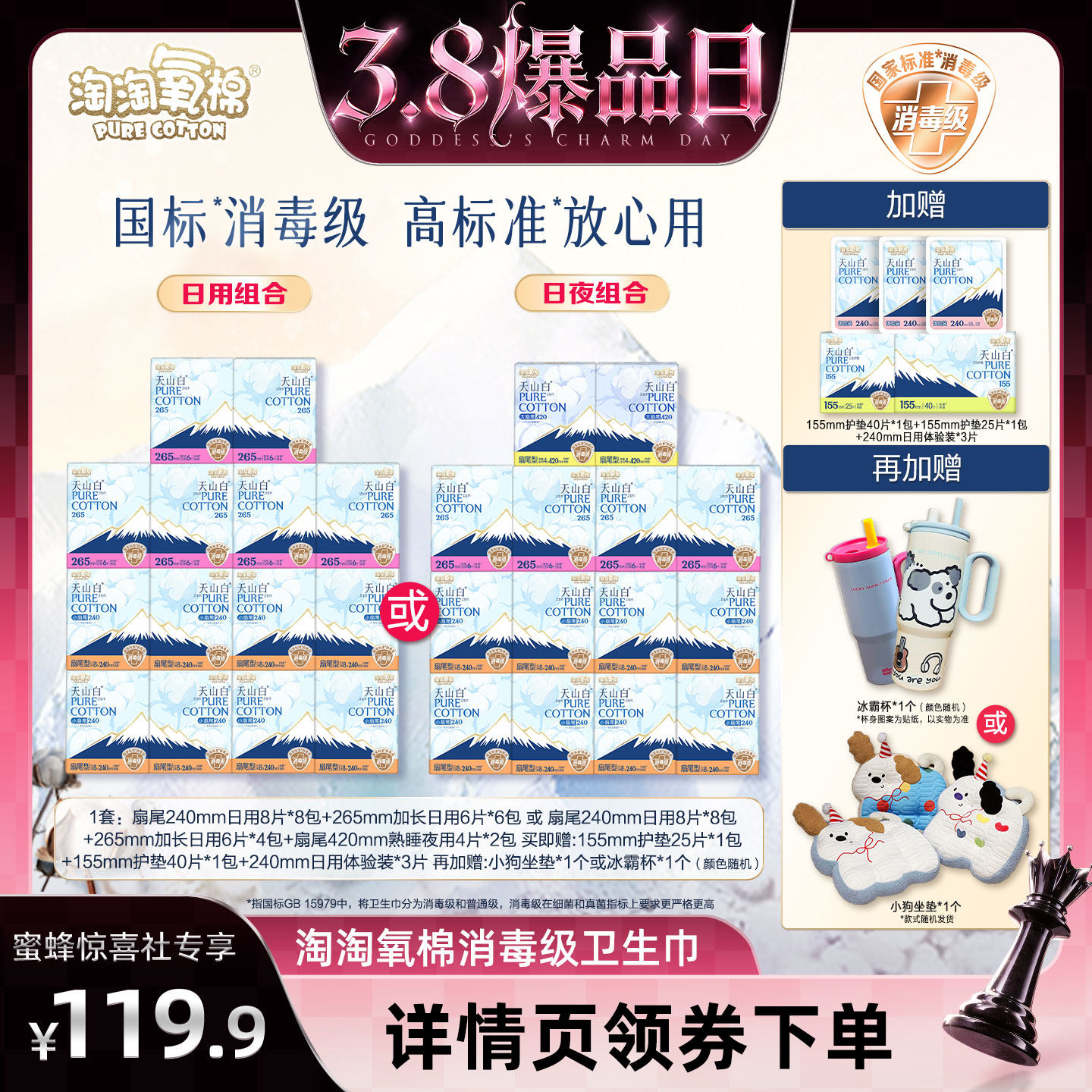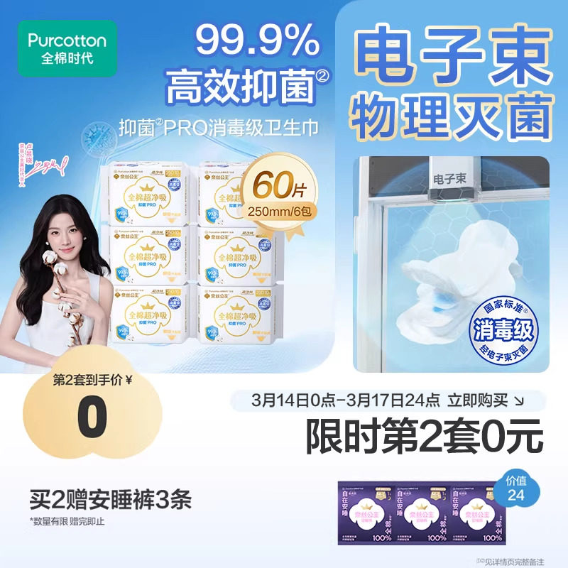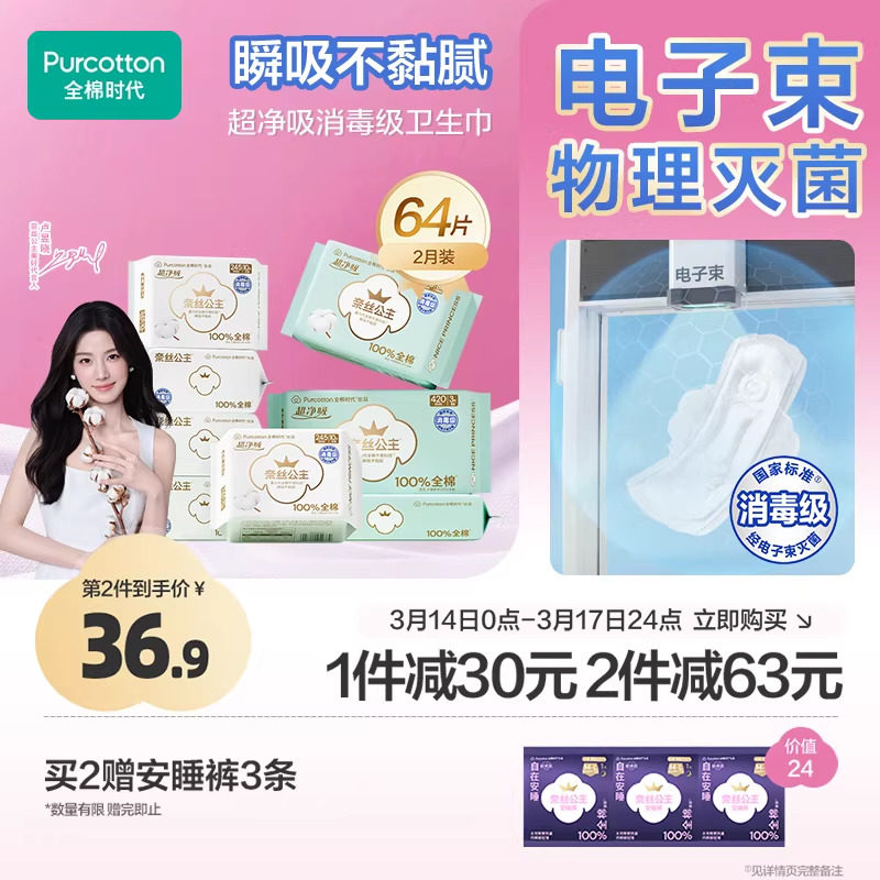 【赠杨紫同款巨无霸保温杯】淘淘氧棉天山白纯棉卫生巾熟睡裤组合