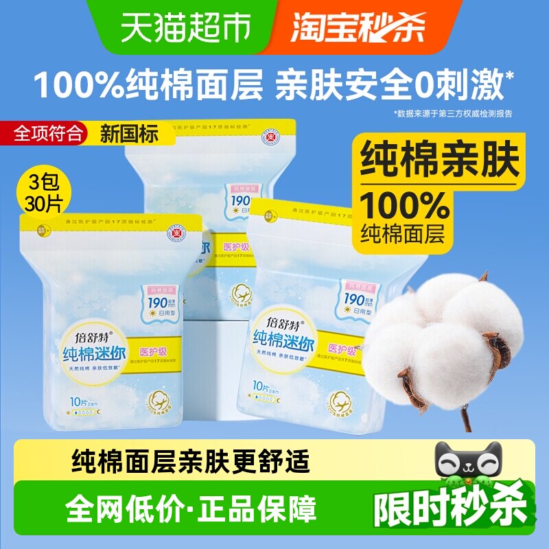 【拍3送99元大礼包】倍舒特爆款植物系卫生巾100%纯棉抑菌敏感肌