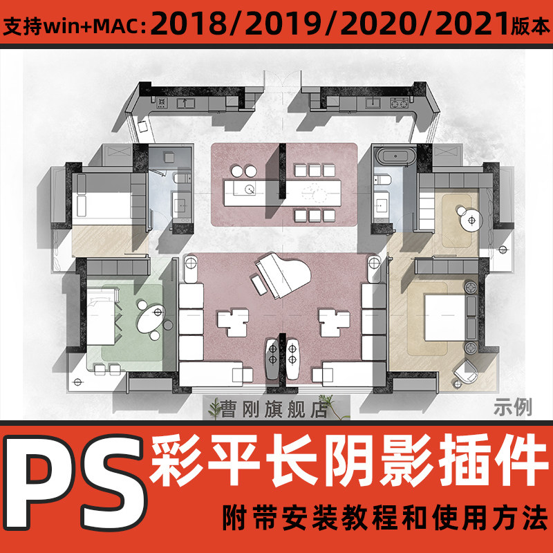 PS长阴影插件景观室内设计彩平图墙体一键生成立体投影PS软件素材