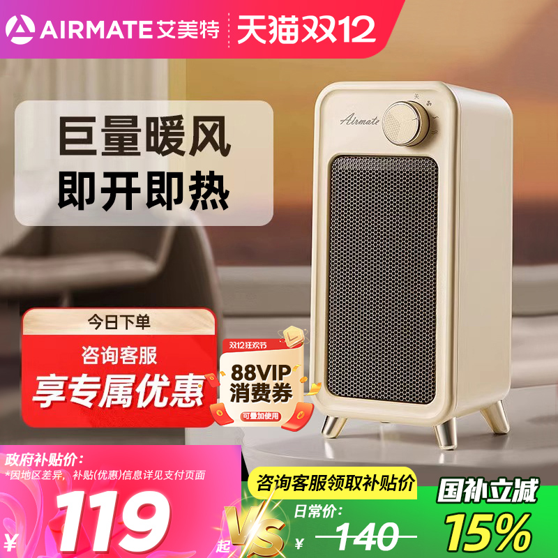 艾美特暖风机烤火炉电暖气冬季家用小太阳取暖器小型PTC热风机