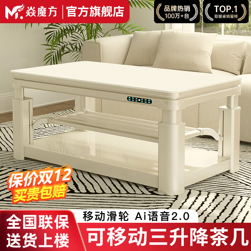 焱魔方2025新款电取暖桌客厅家用升降茶几一体烤火桌烤火炉电暖桌