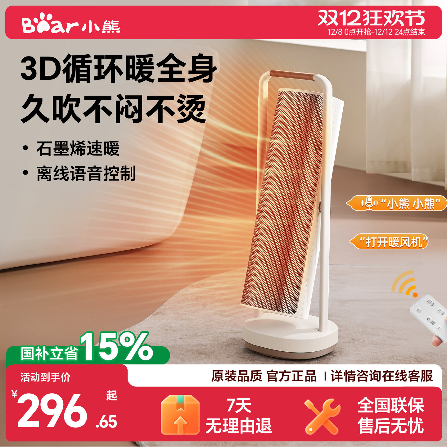 小熊取暖器家用暖风机冬季轻音小太阳3D摇头石墨烯烤火炉电暖器气