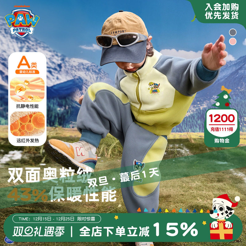 汪汪队男童冬装套装2025新款冬季宝宝男孩加绒加厚保暖儿童运动服