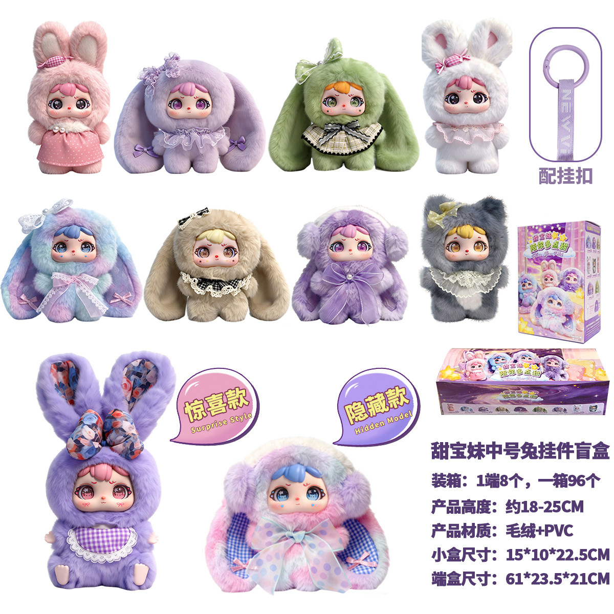正版甜宝妹200体绿色创意毛绒兔公仔包包挂件摆件礼品可爱盒装
